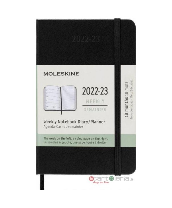 AGENDA 9X14 SETTIMANALE 18 MESI COPERTINA RIGIDA MOLESKINE PANINI