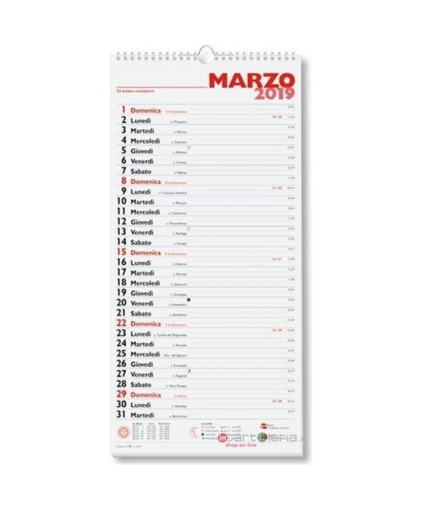 CALENDARIO 23X48 SPIRALE OLANDESE 13FF CANGINI (Cod. 000780-12)