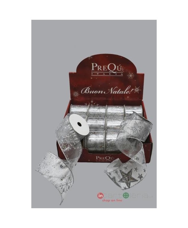 NASTRO RASO 6,3X270CM ARGENTO GLITTER PREQU (Cod. F4752)