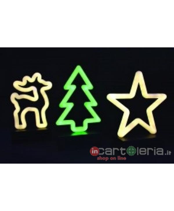 FORMA LUMINOSA LED CON PIEDISTALLO - H. CM. 18/20 - LUCE CALDA/VERDE - LUCE FISSA - A BATTERIA - PER USO SOLO INTERNO