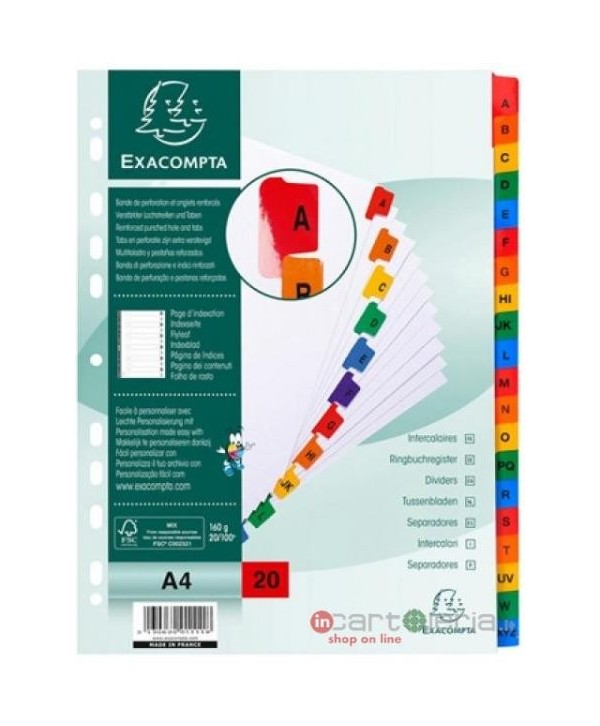 INTERCALARE A4 ALFABETICO A-Z CARTONCINO CLAIREFONTAINE QUO VADIS (Cod. 1111E)
